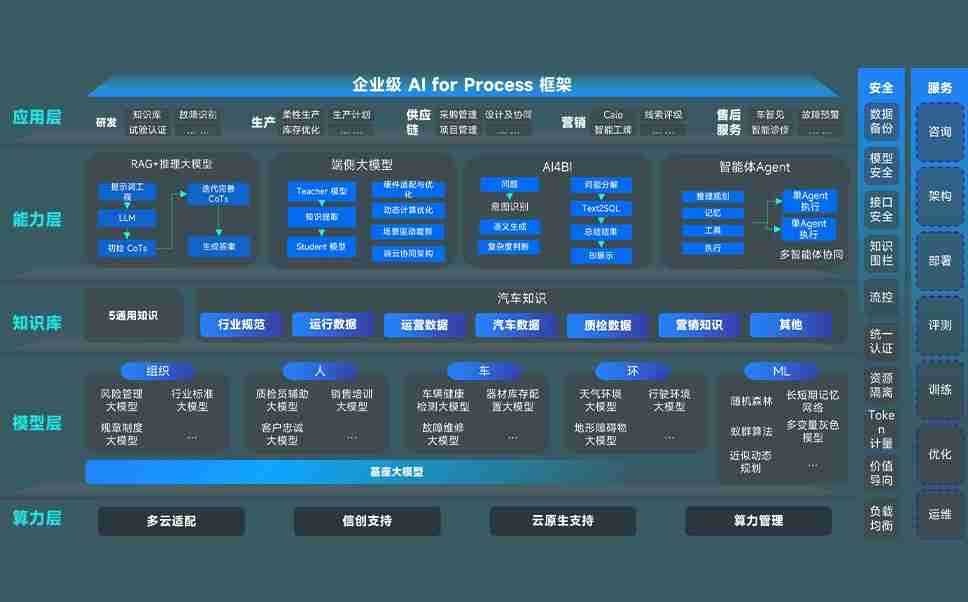 端到端的一站式AI工作空间深度融合了从企业战略规划到日常经营的全流程业务板块,,,定向解决车企内部领域多、、、、部门多、、链条长、、、场景碎片化等难题,,,,支持车企快速构建以AI为核心的生产力写作体系,,实现任务执行与AI能力的无缝集成与交互
